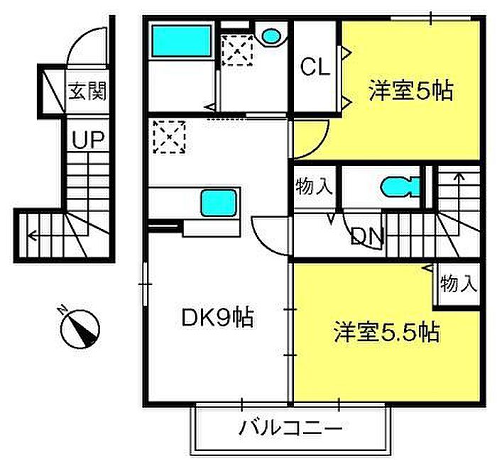 グランポルテ美園 A 2DK/2階