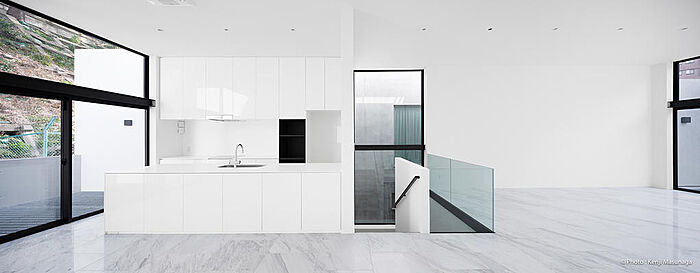 LDKは、43.72帖、天井高3.16mの大空間に天然大理石を敷き詰めています。事務所兼用住宅も可。