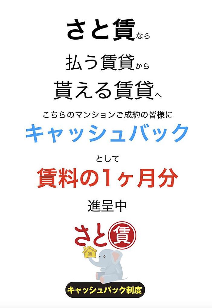 さと賃でご契約の方は仲介手数料無料さらに賃料の1ヶ月分をキャッシュバック中です。お申し込みお手続きは来店不要のWEBによる電子申込み対応しています。home’s掲載以外の取扱物件多数あります。詳しくは公式ホームページまでお願いいたします。公式ホームページ:https://satochin.jp/その他気になるお部屋等ありましたら公式LINEまでメッセージ送ってください。公式LINE:https://lin.ee/YEcJE3mあなたのお部屋探し全力サポートいたします。