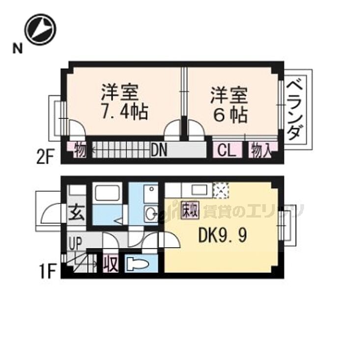 近江八幡市十王町 テラスハウス 2LDK/2階