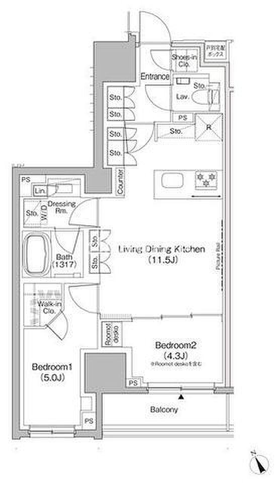 中央区日本橋茅場町2丁目 マンション 2LDK/2階