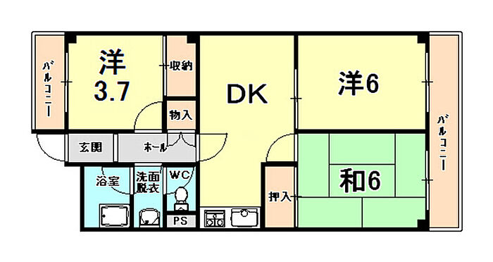 ロングライフ尼団 3DK/4階