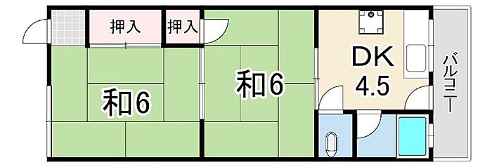 北区鈴蘭台アパート(6) 2K/2階