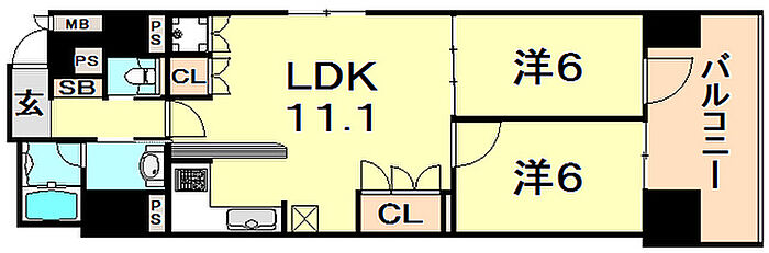 リーガル神戸三宮フラワーロード 2LDK/2階
