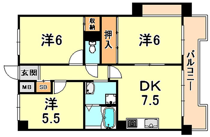 マリンクレール六甲1 3DK/6階