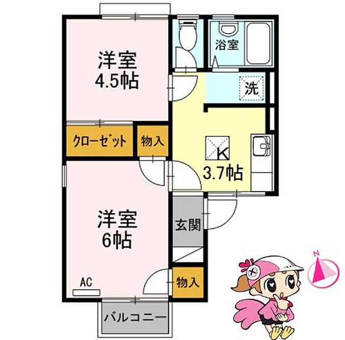 徳島市北島田町2丁目 アパート 2K/1階