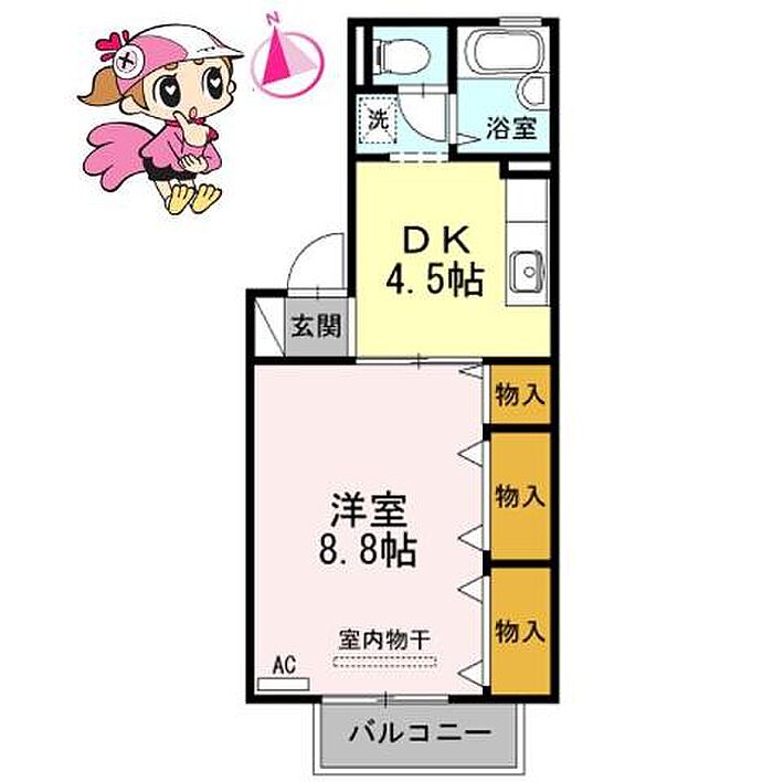 徳島市応神町古川字戎子野 アパート 1DK/1階