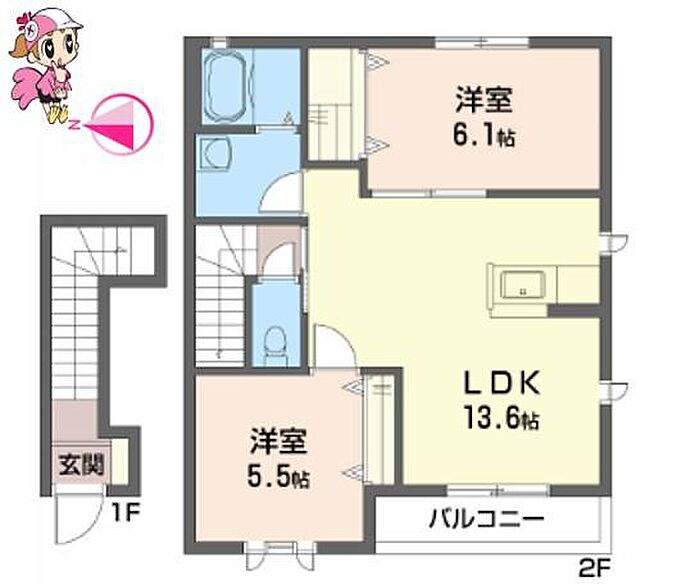 徳島市北田宮2丁目 アパート 2LDK/2階