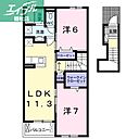 倉敷市北畝1丁目 アパート 2LDK/2階