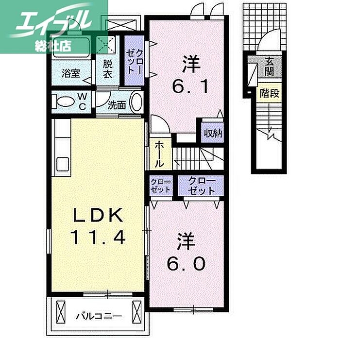 岡山市北区一宮 アパート 2LDK/2階