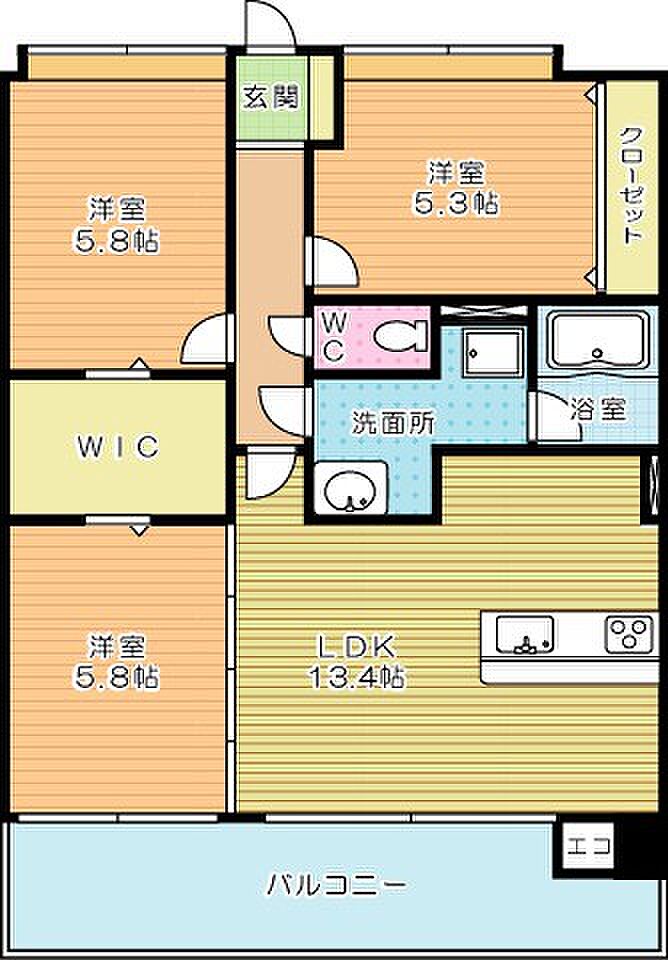 リビングダイニングキッチン 13.4帖)