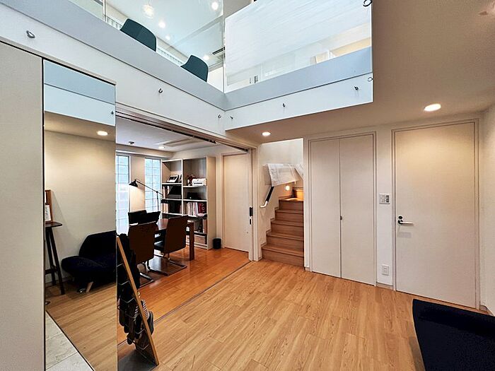学芸大学駅から徒歩5分で、住宅街にあるモダンな一戸建て。白を基調とした明るく開放的な室内空間。