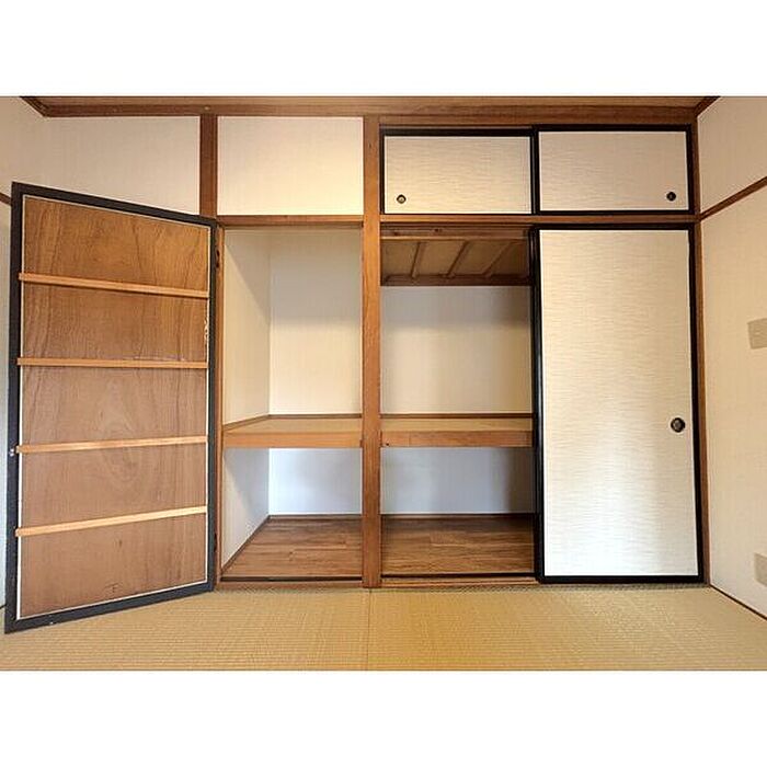 13帖以上あるLDKで家族団らん、楽しい時間をすごしませんか。 無料駐車場付きで、駐車場の後ろに専用物置もございます。 和室もあるのでお布団派にもおススメ。