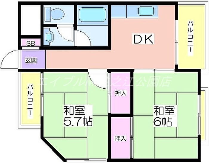 ハイツ二美園 2DK/4階