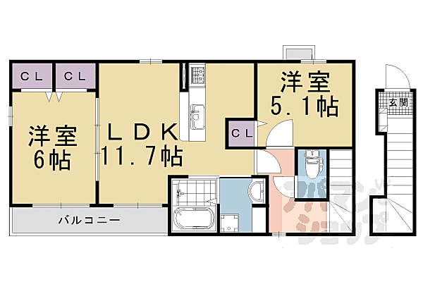 京都市伏見区久我御旅町 アパート 2LDK/2階