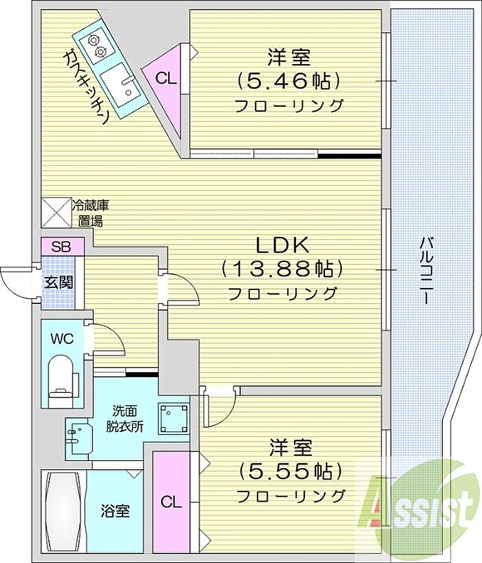 グランカーサ北3条 2LDK/2階