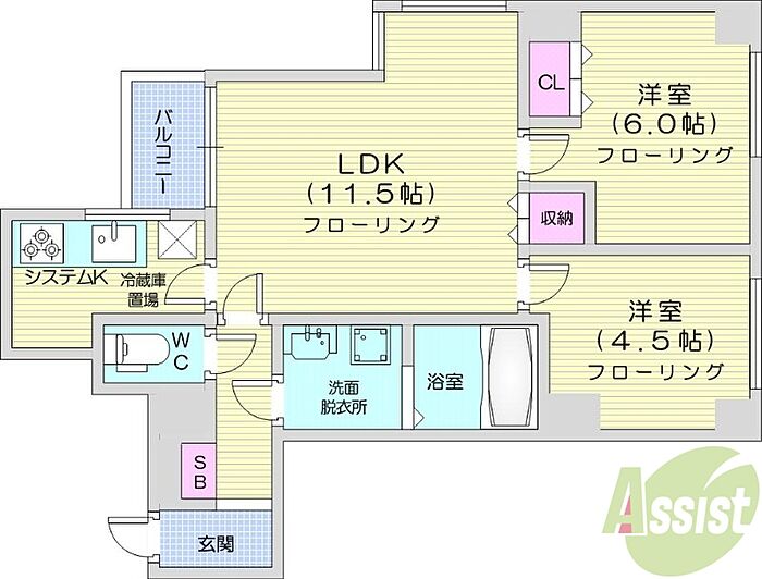 クレアシオン桑園2 2LDK/6階
