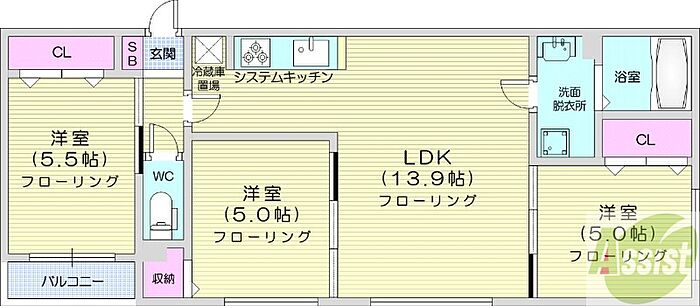 札幌市中央区南七条西16丁目 マンション 3LDK/2階
