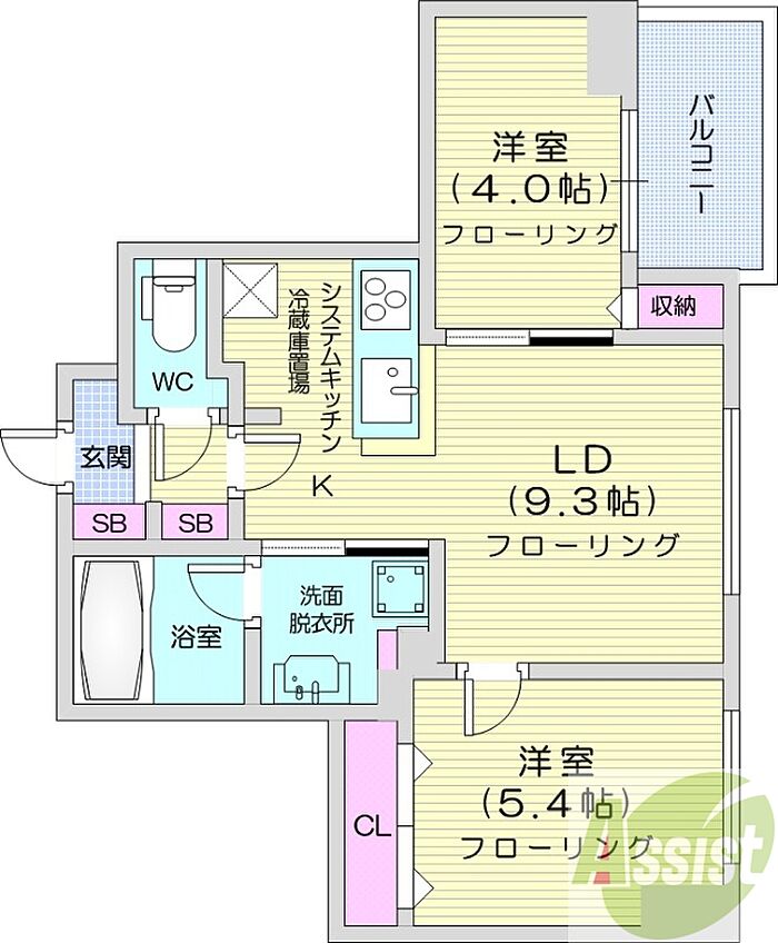 クラッセ札幌シティアクシア・サウステラス 2LDK/4階