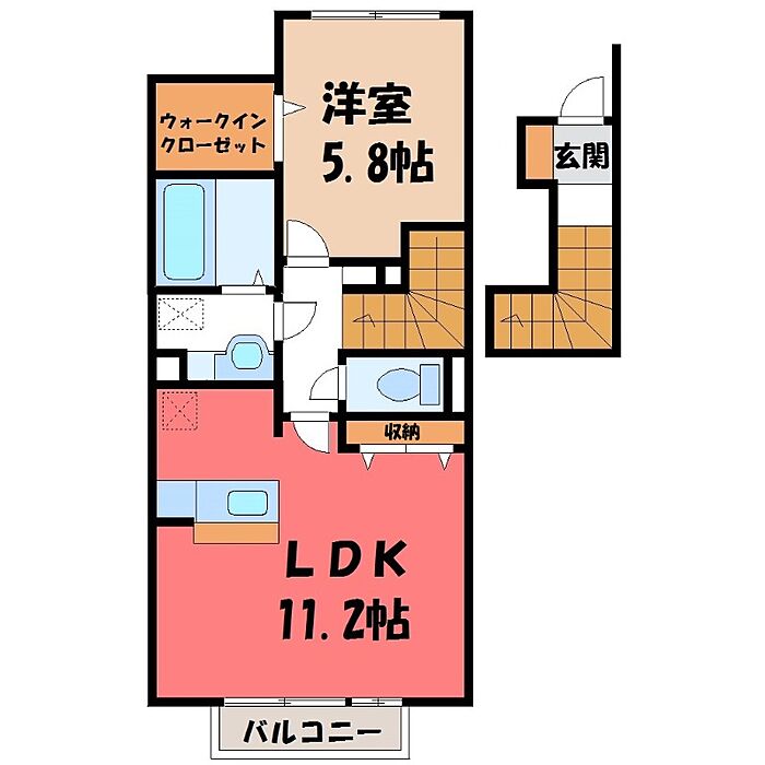 宇都宮市清原台5丁目 アパート 1LDK/2階