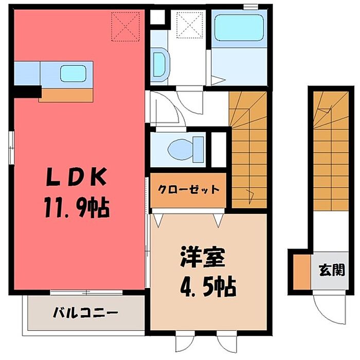 宇都宮市峰2丁目 アパート 1LDK/2階