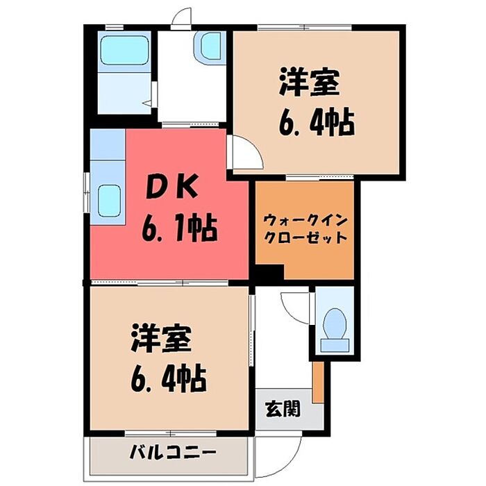 小山市西城南1丁目 アパート 2DK/1階