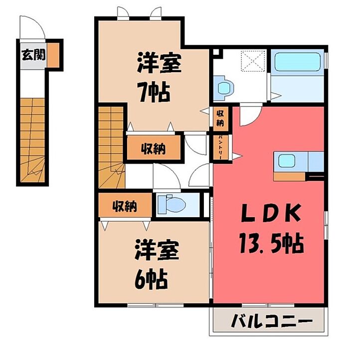 小山市犬塚5丁目 アパート 2LDK/2階