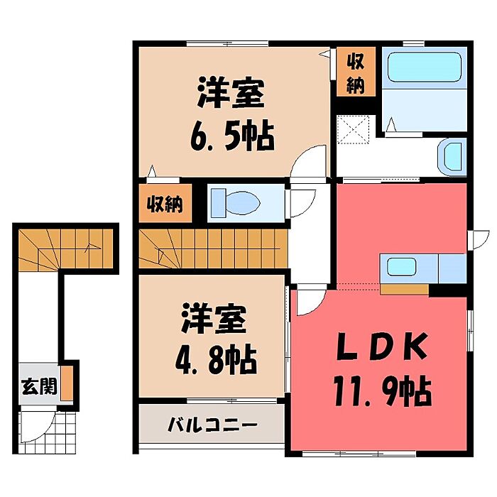 宇都宮市ゆいの杜5丁目 アパート 2LDK/2階