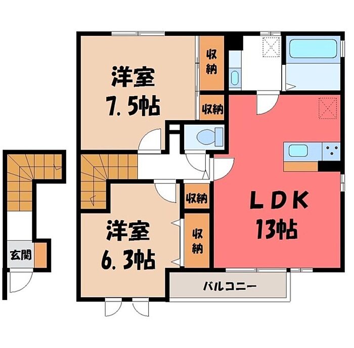 結城市川木谷2丁目 アパート 2LDK/2階