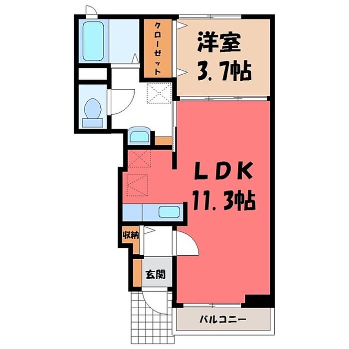 鹿沼市上野町 アパート 1LDK/1階