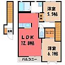 宇都宮市宝木町1丁目 アパート 2LDK/2階