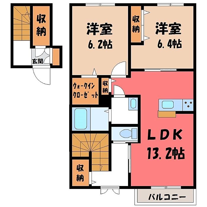 下都賀郡壬生町通町 アパート 2LDK/2階