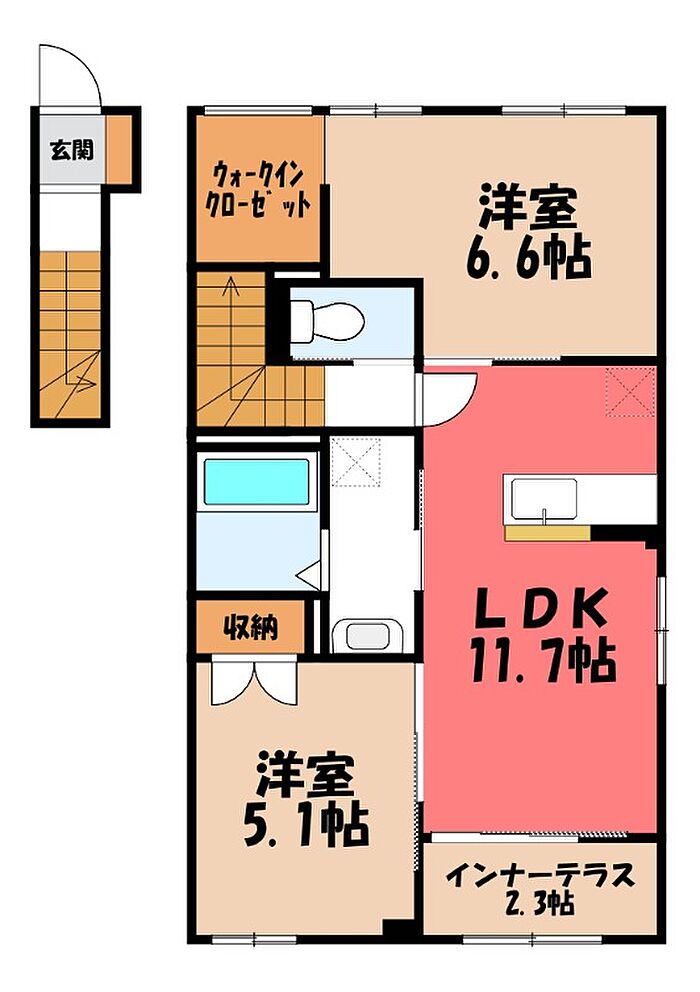 宇都宮市下栗町 アパート 2LDK/2階