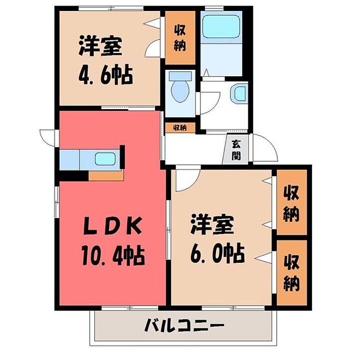宇都宮市駒生町 アパート 2LDK/2階