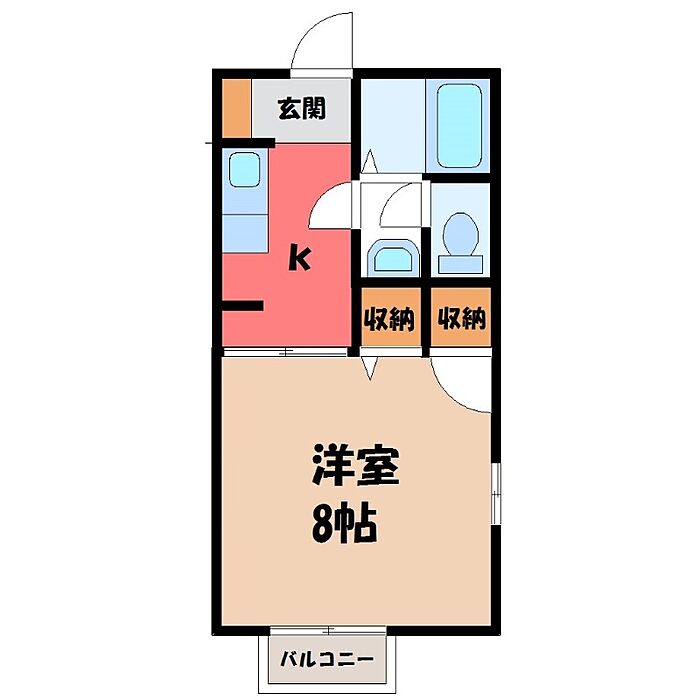 宇都宮市峰3丁目 アパート 1K/2階
