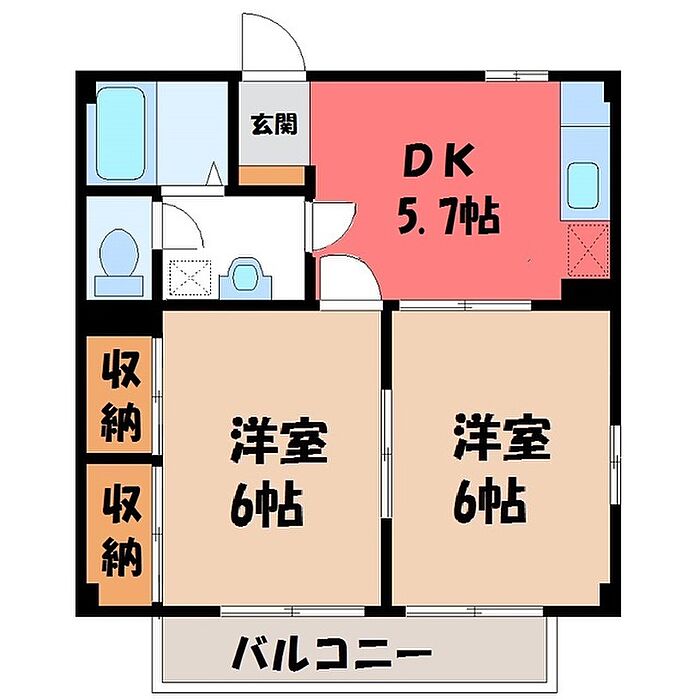 宇都宮市陽東8丁目 アパート 2DK/2階