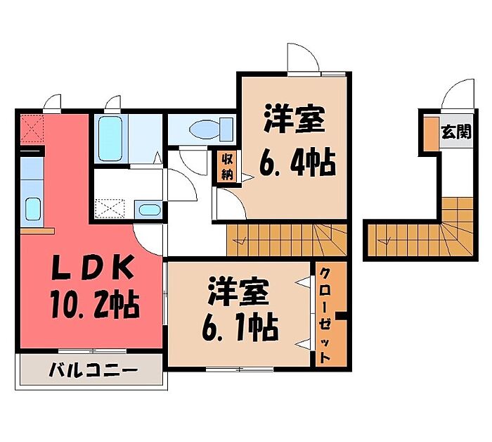 下都賀郡壬生町本丸1丁目 アパート 2LDK/2階