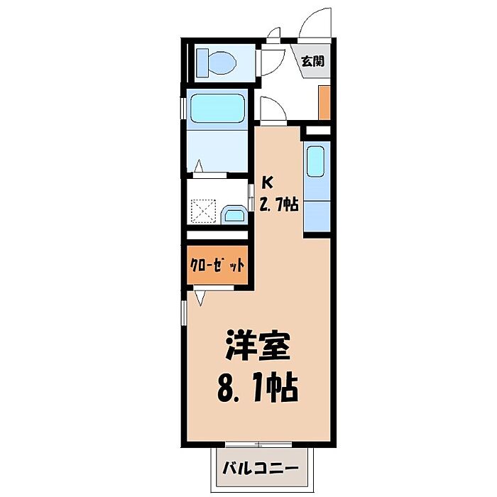 宇都宮市峰2丁目 アパート ワンルーム/2階