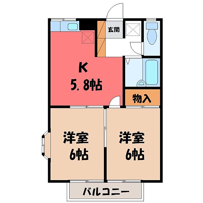 さくら市卯の里2丁目 アパート 2K/2階
