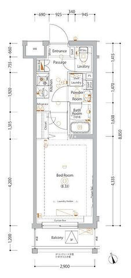エストゥルース亀戸 308 1K/3階
