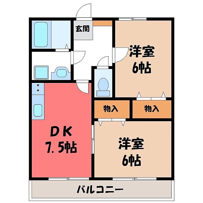 ムゲンハイツ若草 B 2DK/1階