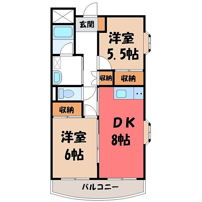 宇都宮昭和ビル II 2DK/2階