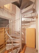 「創作空間」に取材文、VR360度有り◎/地下1階から地上1階にかけてのメゾネット/地下1階は黒いマットが敷き詰められ、シックな雰囲気/ワークスベースとリビングスペースに分けられます。/東中野駅から徒歩2分の好立地/螺旋階段/2口ガスコンロキッチンでお料理もはかどります/稼働式収納有/エアコン2基完備/嬉しいウォシュレット付き
