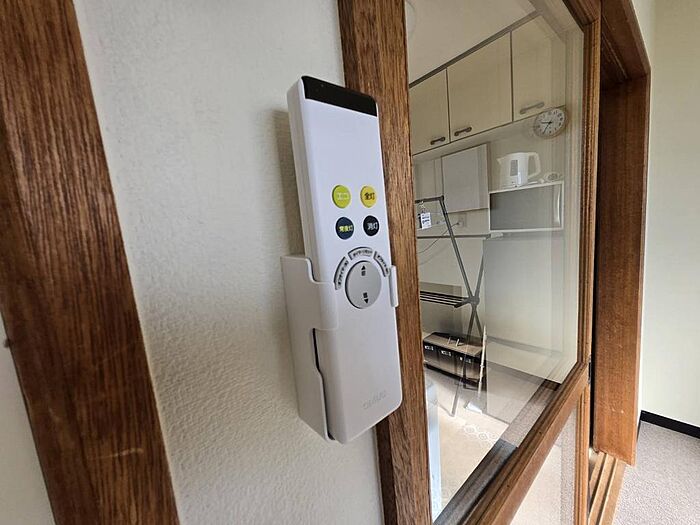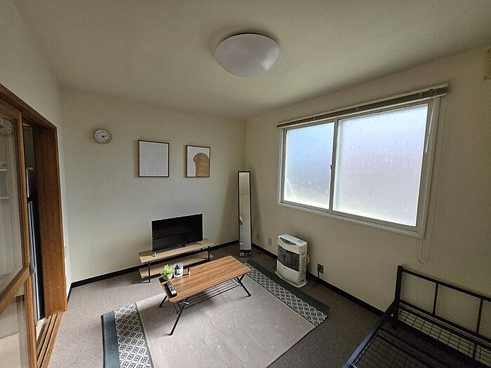 テレビ/テレビボード/電子レンジ/冷蔵庫/洗濯機/ガスコンロ/電気ケトル/テーブル/簡易ベッド/カーテン/洗濯物干し/ごみ箱/クイックルワイパー/ドライヤー/リモコン付照明/ストーブ/姿見/ブラインド/時計