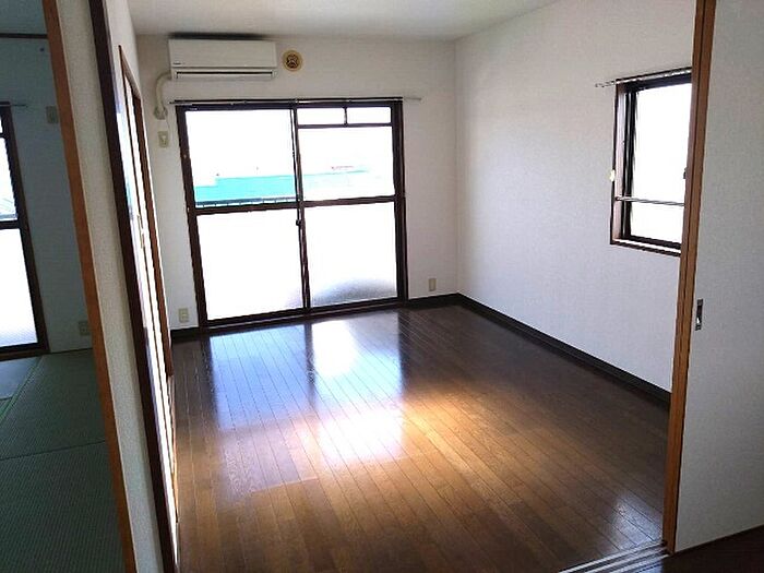 2口ガスコンロ設置可能、作業スペースも広いキッチン♪嬉しいエアコン付き。南向きで日当たり良好。お洗濯物も安心して干せます!和室のある間取りです。小さなお子さまにはフローリングよりも柔らかい畳のほうが安心です!イ月々のお支払いを抑える事が出来ます!敷地内駐車場完備!火災保険:18、000円/2年。短期解約違約金有り(1年未満は賃料3ヶ月分)