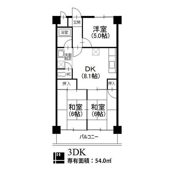 ジュネス21 406 3DK/4階