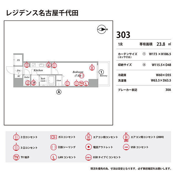 レジデンス名古屋千代田 0303 1K/3階