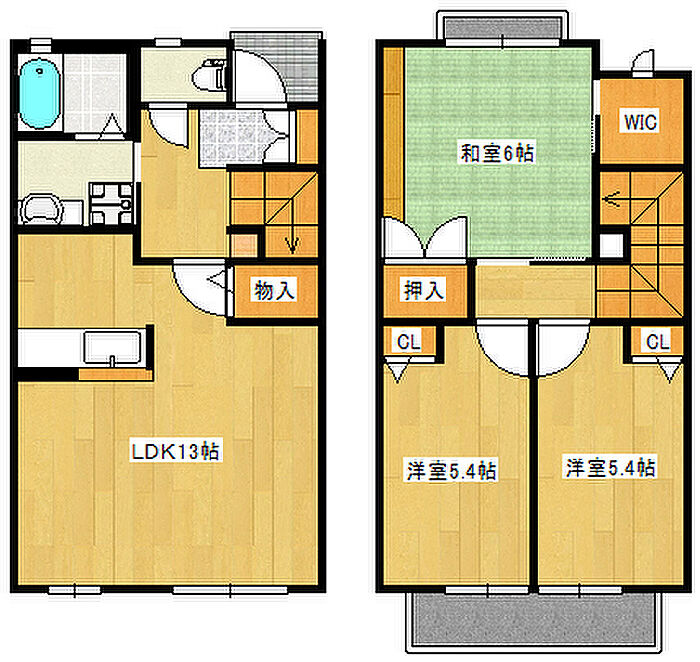 洋室 5.4帖×2)