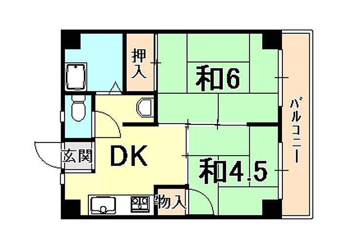 西宮フラワーハイツ 2DK/3階