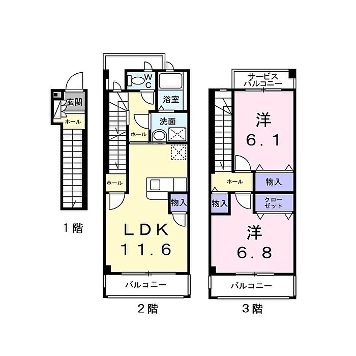 鍵セット費:3300円 リビング階・居室階毎にバルコニーがあるので、お洗濯も快適です。
